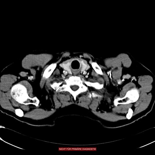 Auch in der KM-Darstellung des Ösophagus lassen sich typische Veränderungen sehen. Eine Aussparung des Kontrastmittels oder eine Stenose sprechen dabei für ein lokal fortgeschrittenes Geschehen.